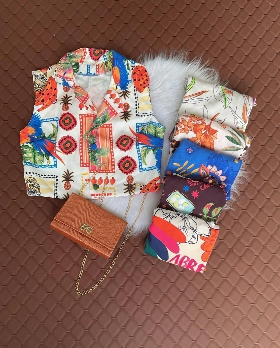 Colete Feminino Alfaiataria Inspiração Farm Estampado com Botões