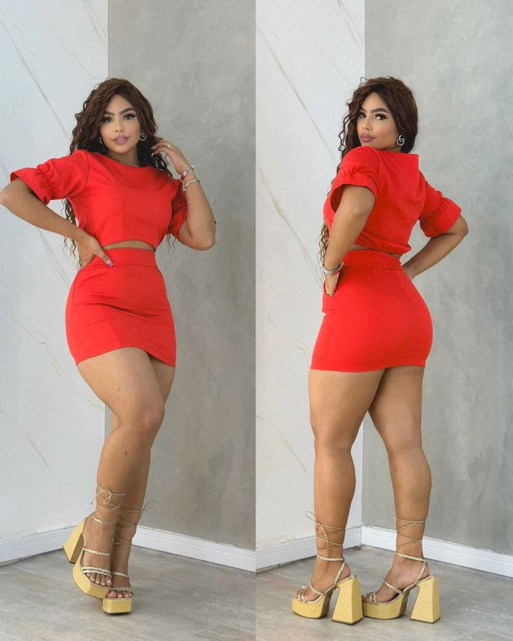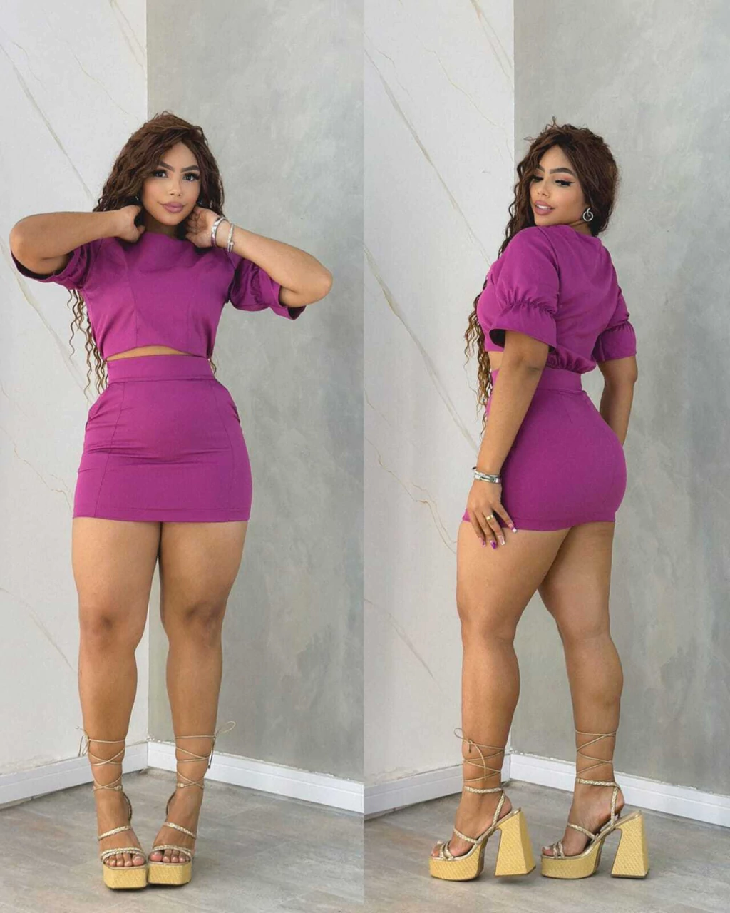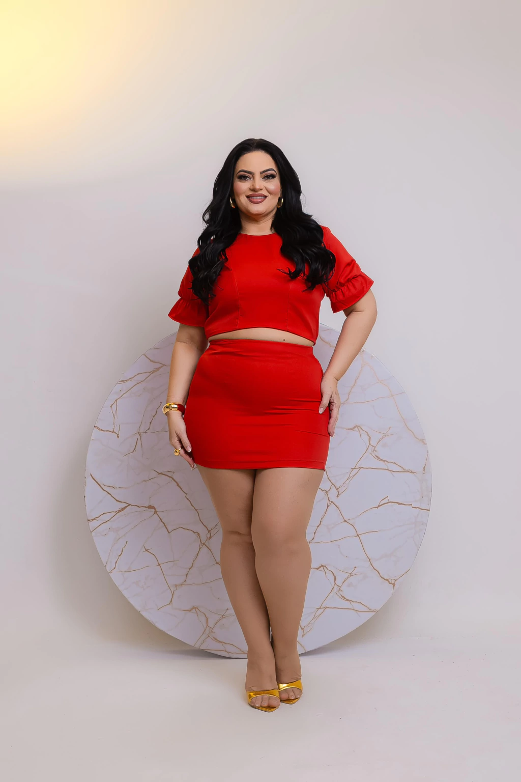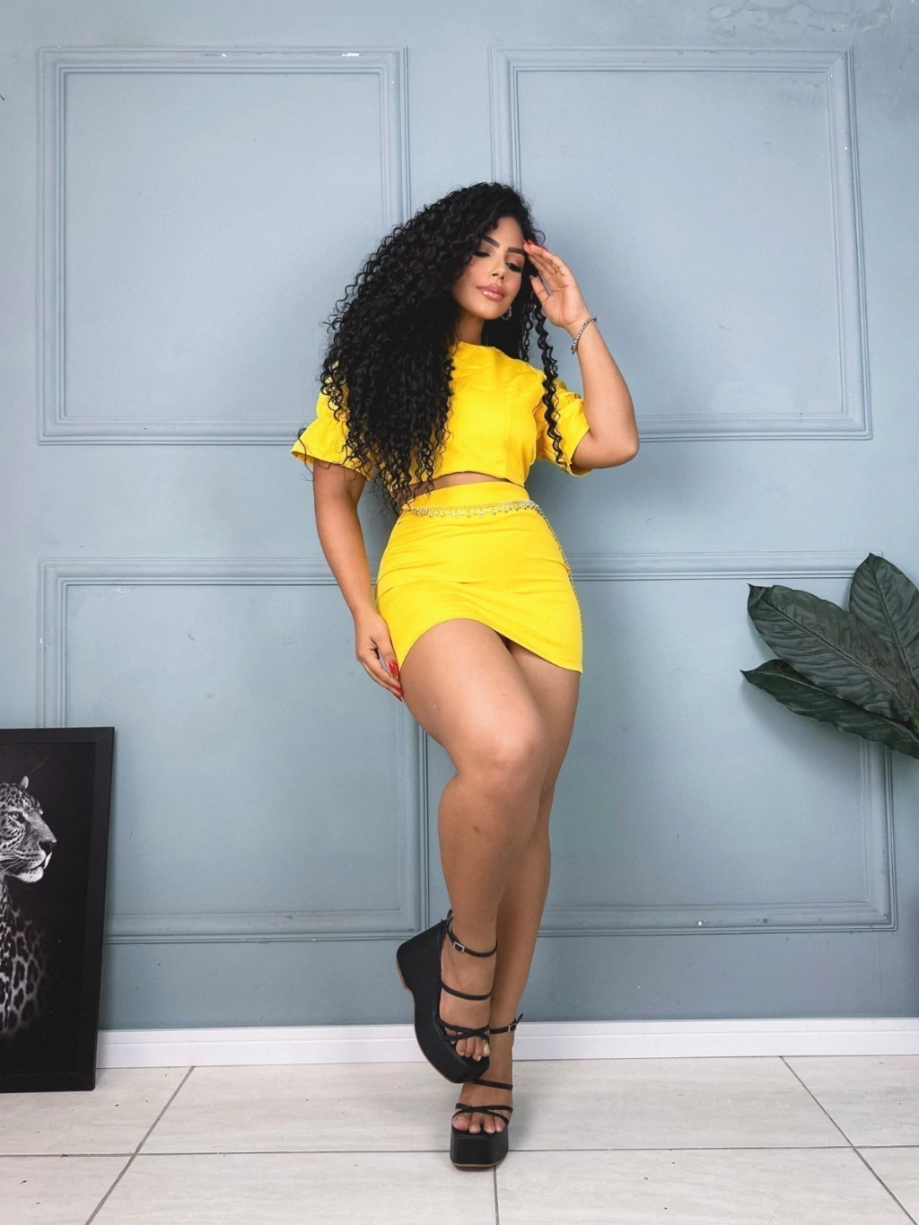 Eleve sua produção com este conjunto feminino de alfaiataria que une sofisticação e modernidade em uma única peça. O modelo conta com blusa cropped de mangas curtas com detalhe franzido e uma saia curta de cintura alta, que valorizam a silhueta com elegância e estilo.