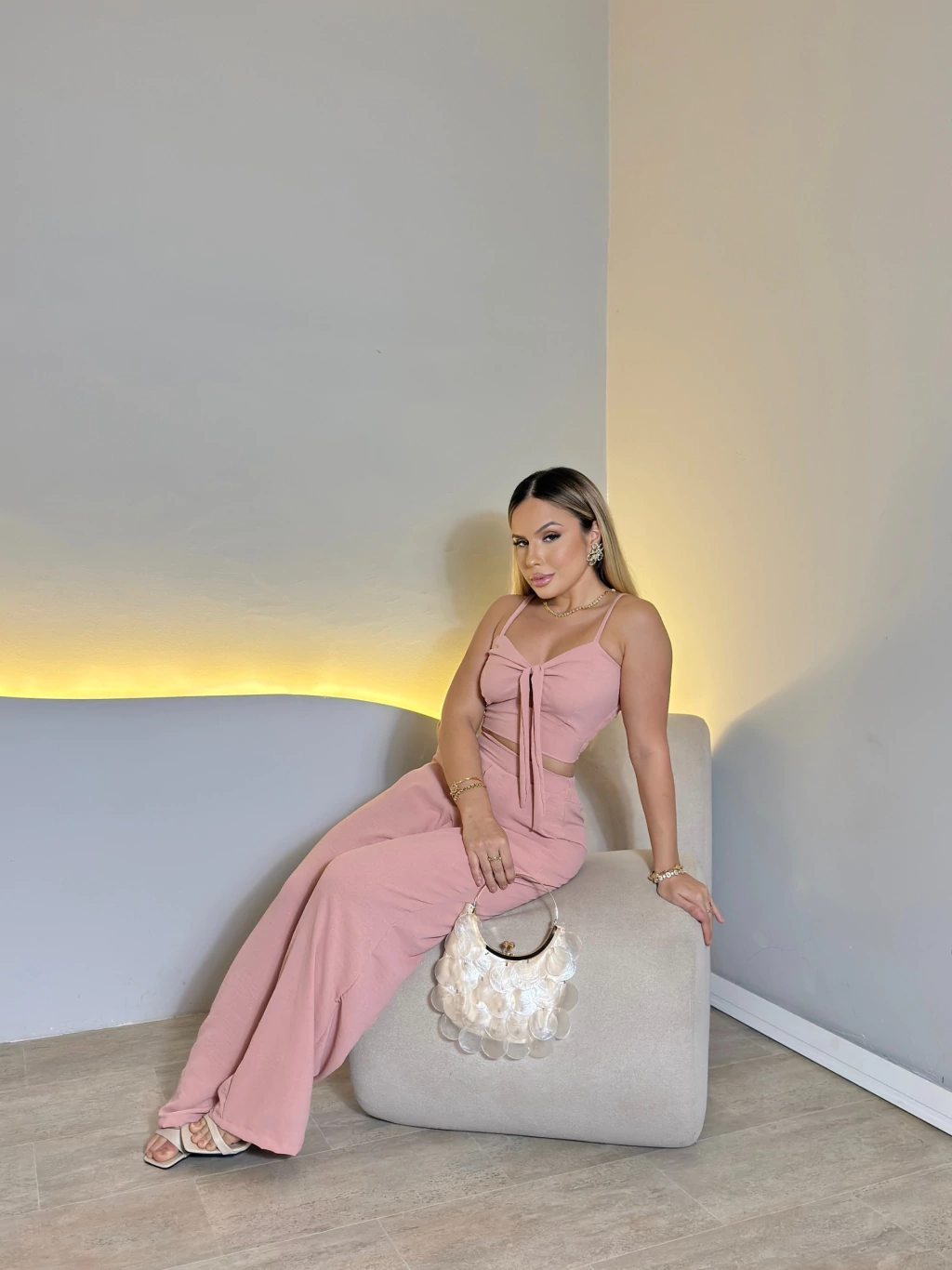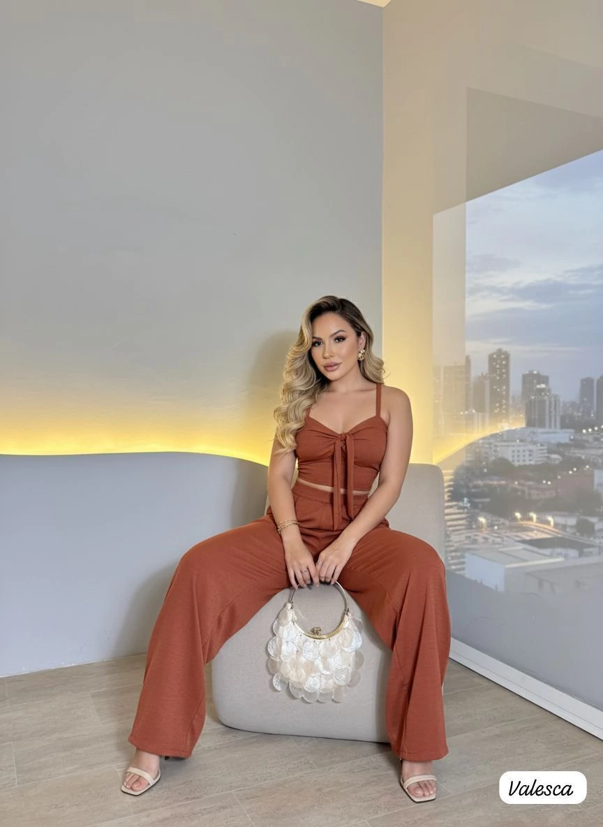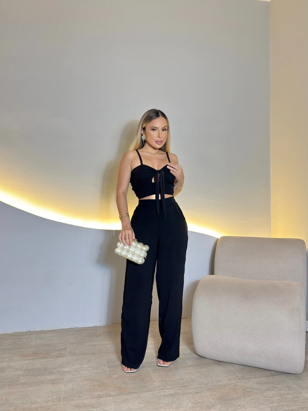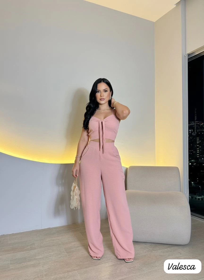 Conforto e elegância definem esse conjunto em Crepe Duna, perfeito para compor produções leves, modernas e estilosas. O modelo traz um cropped com alças finas e detalhe de amarração frontal, realçando o busto de forma delicada. Acompanha calça de cintura alta com caimento reto e soltinho, que proporciona leveza e liberdade nos movimentos. Um conjunto versátil, ideal para diversas ocasiões, do passeio casual ao look mais elaborado.