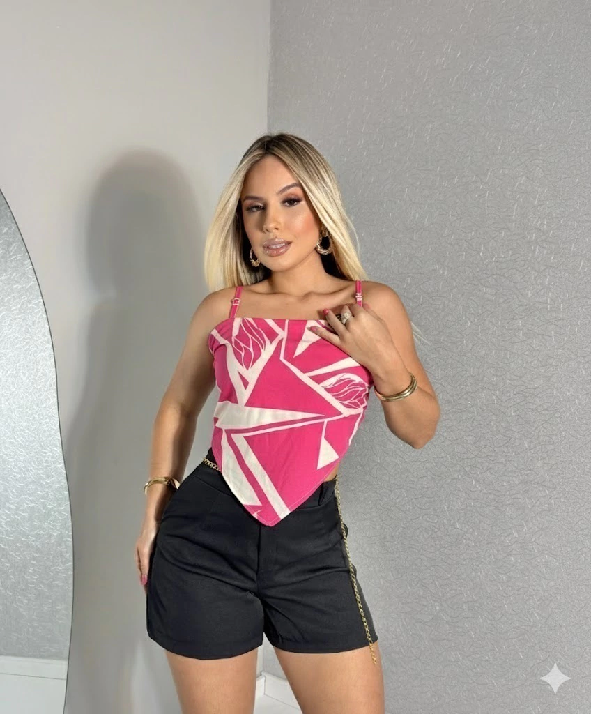 Cropped Feminino Estampado sem Bojo Amarradinho nas Costas