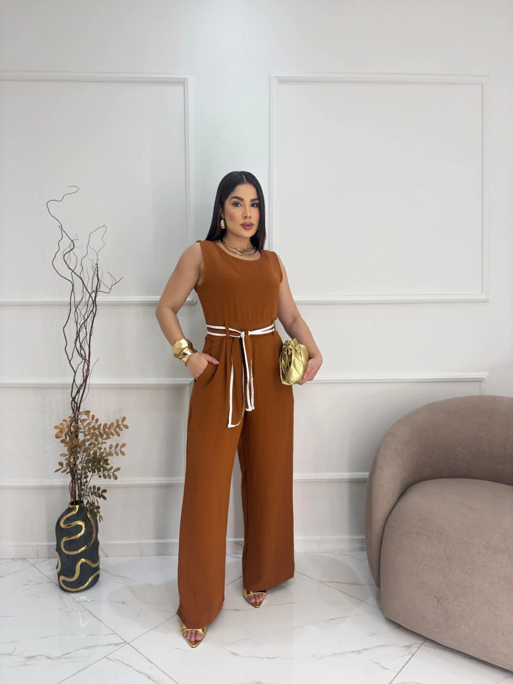 Moderno, prático e super elegante, este macacão é a escolha perfeita para quem deseja unir conforto e estilo em uma única peça. Confeccionado em Crepe Duna, um tecido leve com excelente caimento, o modelo possui alças largas e decote arredondado, proporcionando mais segurança e sofisticação ao look.