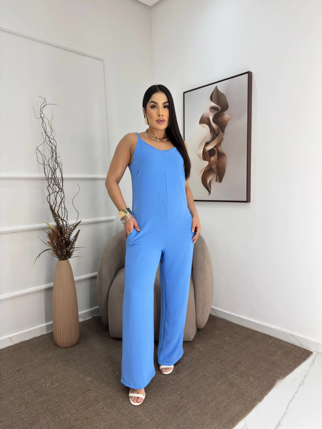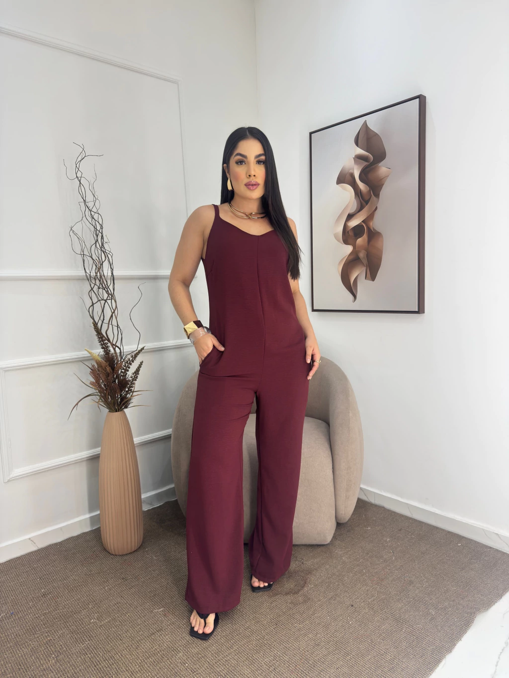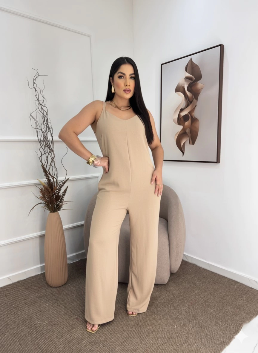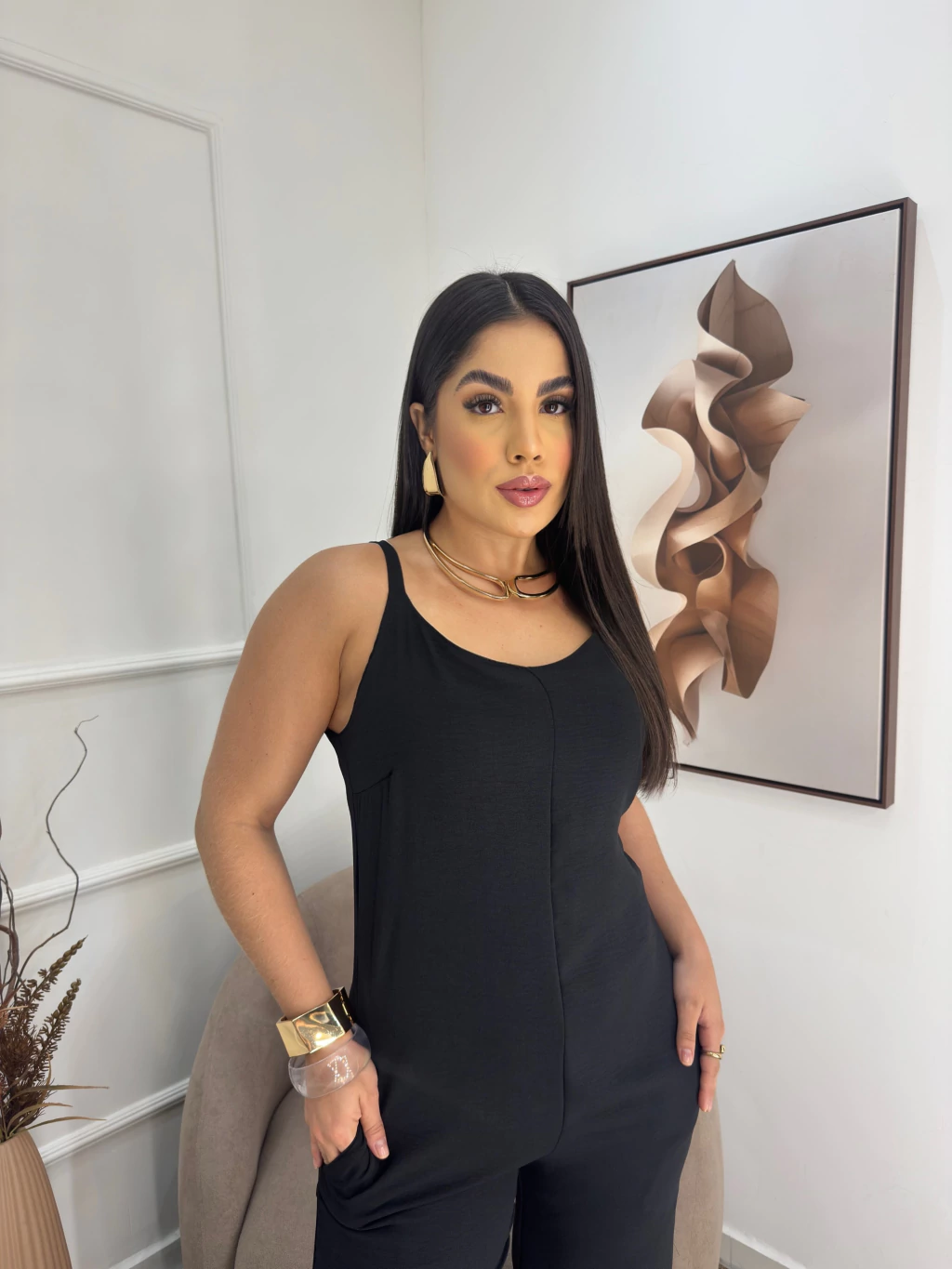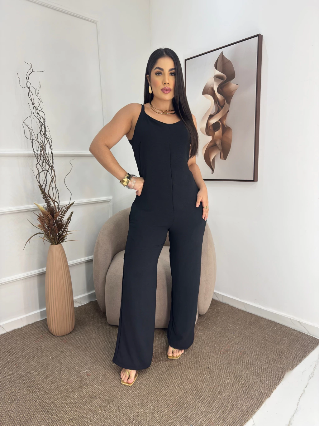 Macacão Feminino em Crepe Duna – Alças Finas e Caimento Reto