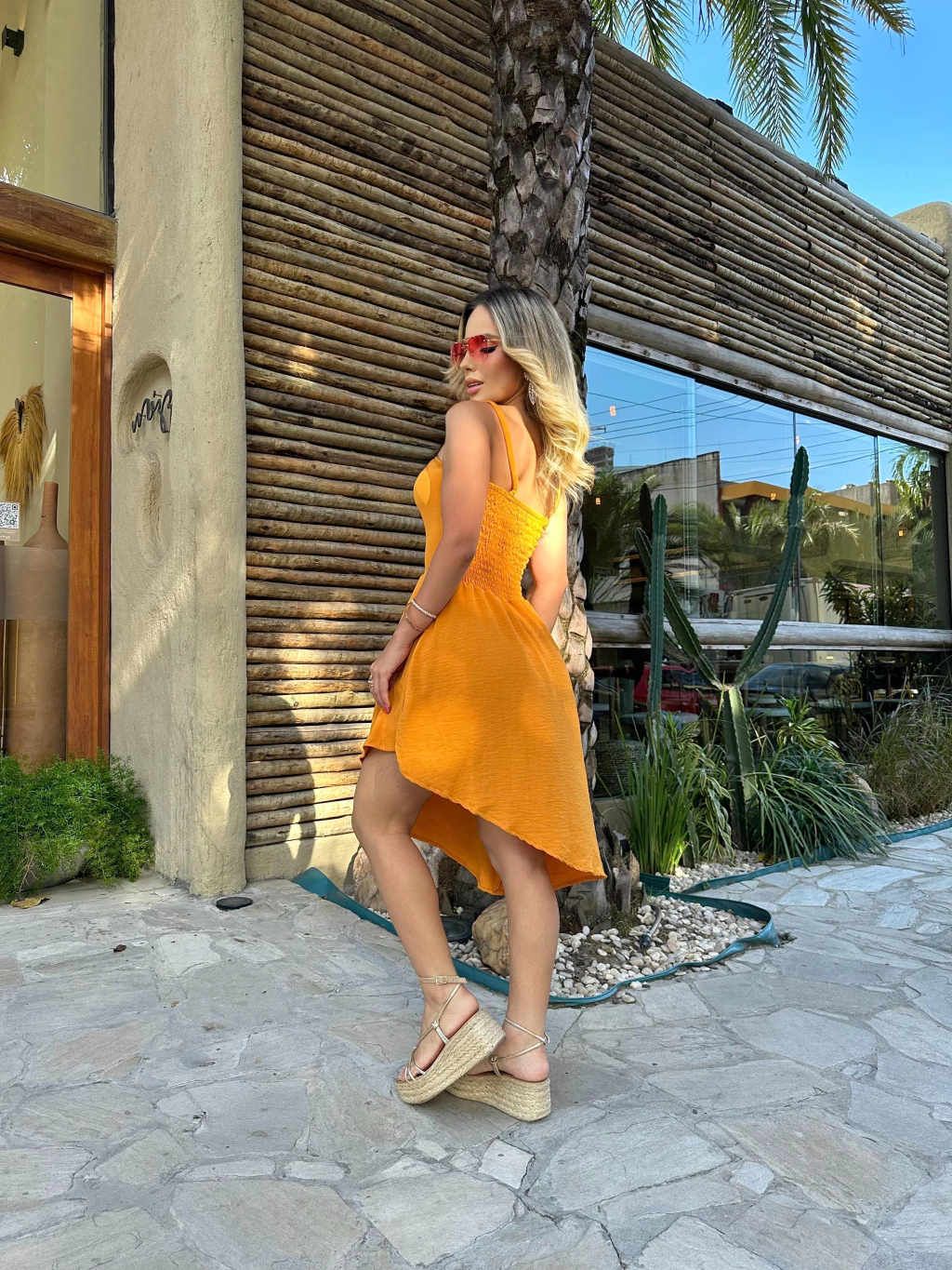 Macaquinho com modelagem que imita o caimento de um vestido, proporcionando elegância e conforto em uma única peça. Confeccionado em tecido Crepe Duna, apresenta caimento leve e toque suave. A parte superior conta com alças finas e decote reto, garantindo um visual delicado e sofisticado. A saia assimétrica sobreposta cria movimento e charme, enquanto o shorts interno oferece segurança e liberdade para se movimentar. Ideal para ocasiões que pedem estilo sem abrir mão do conforto.