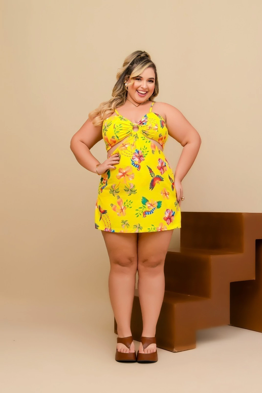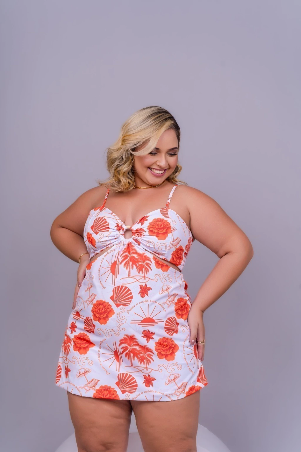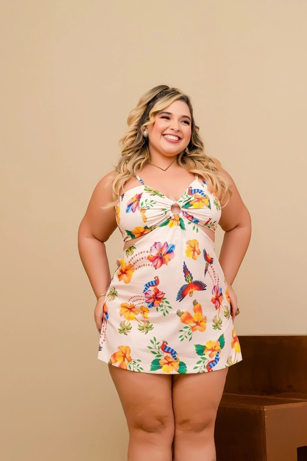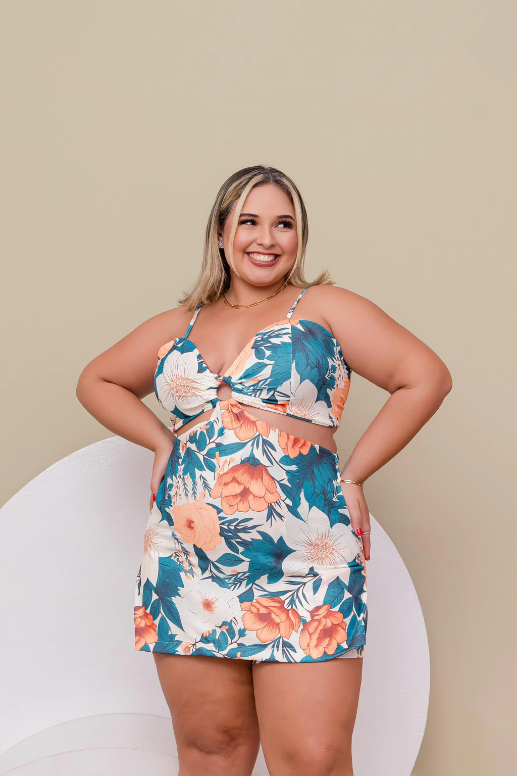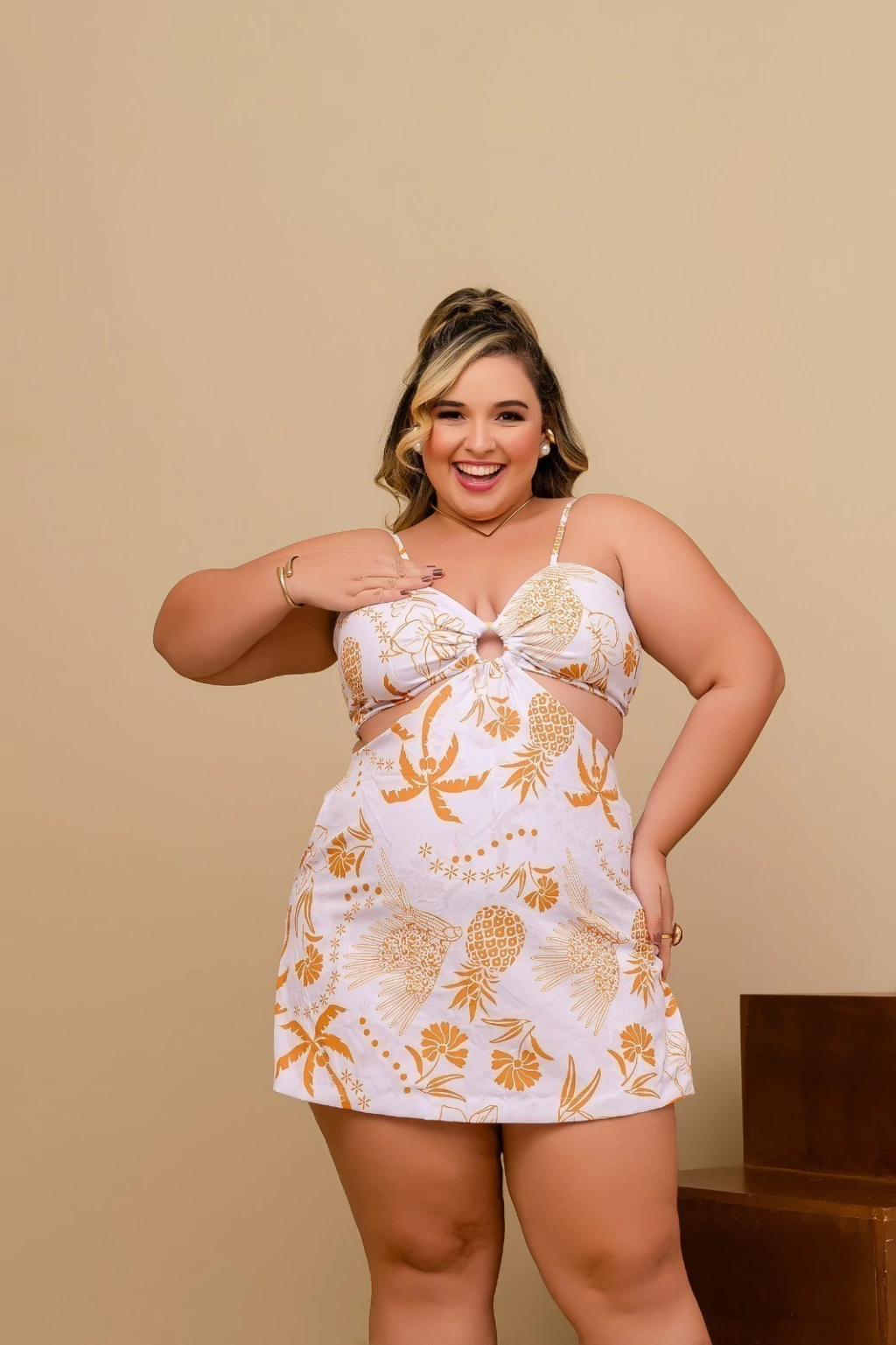Este macaquinho plus size é a escolha perfeita para quem busca conforto, estilo e versatilidade. Com modelagem que valoriza o corpo, possui amarração nas costas e recorte frontal, conferindo um toque moderno e sensual. Ideal para dias quentes, viagens ou passeios descontraídos.