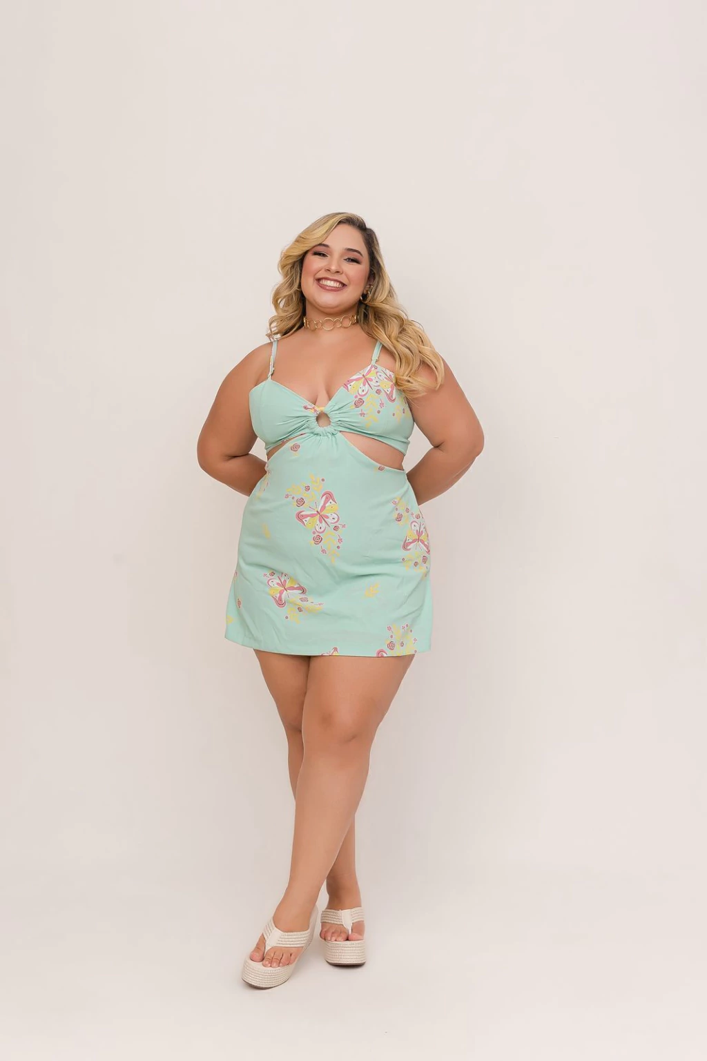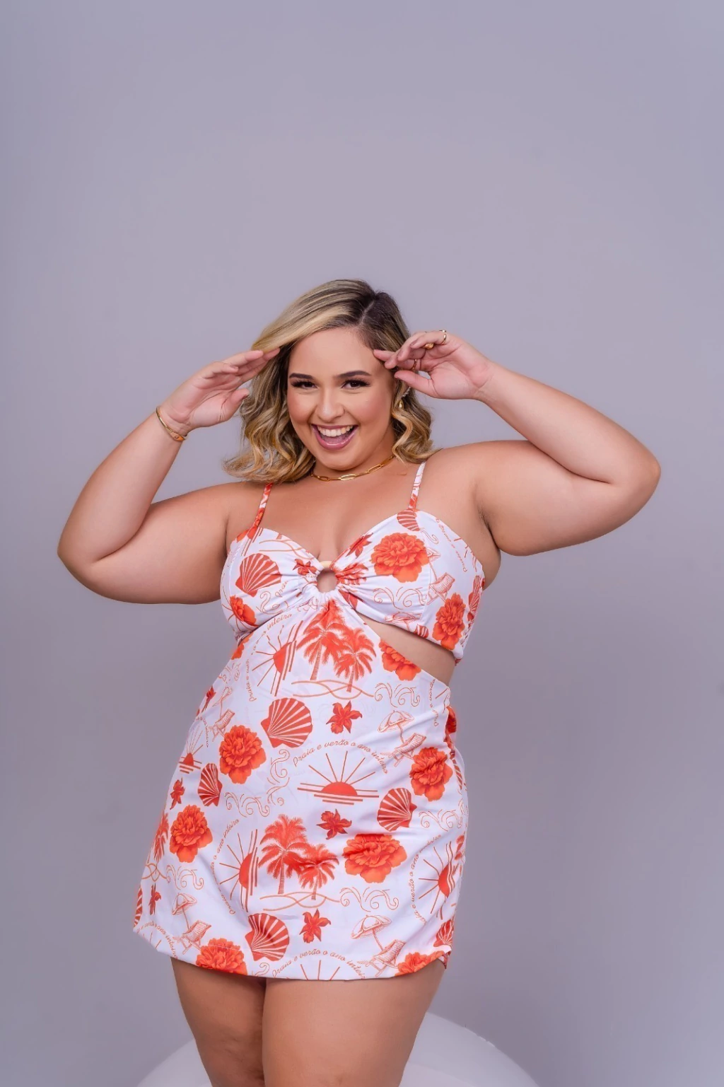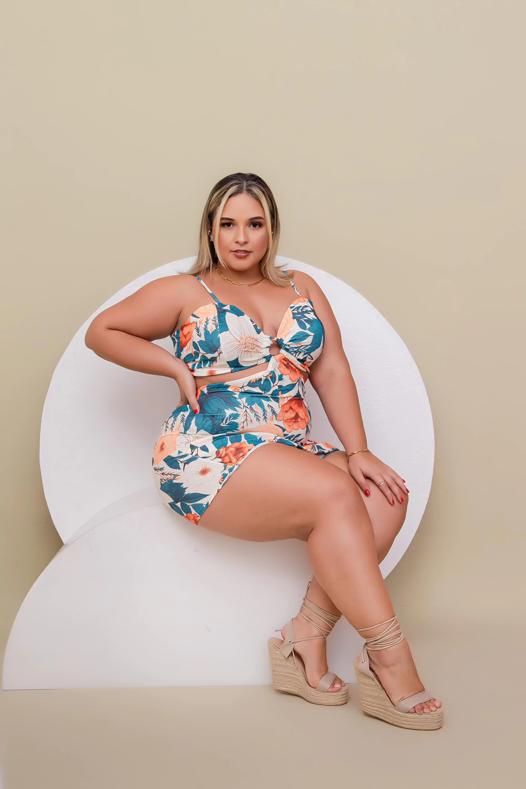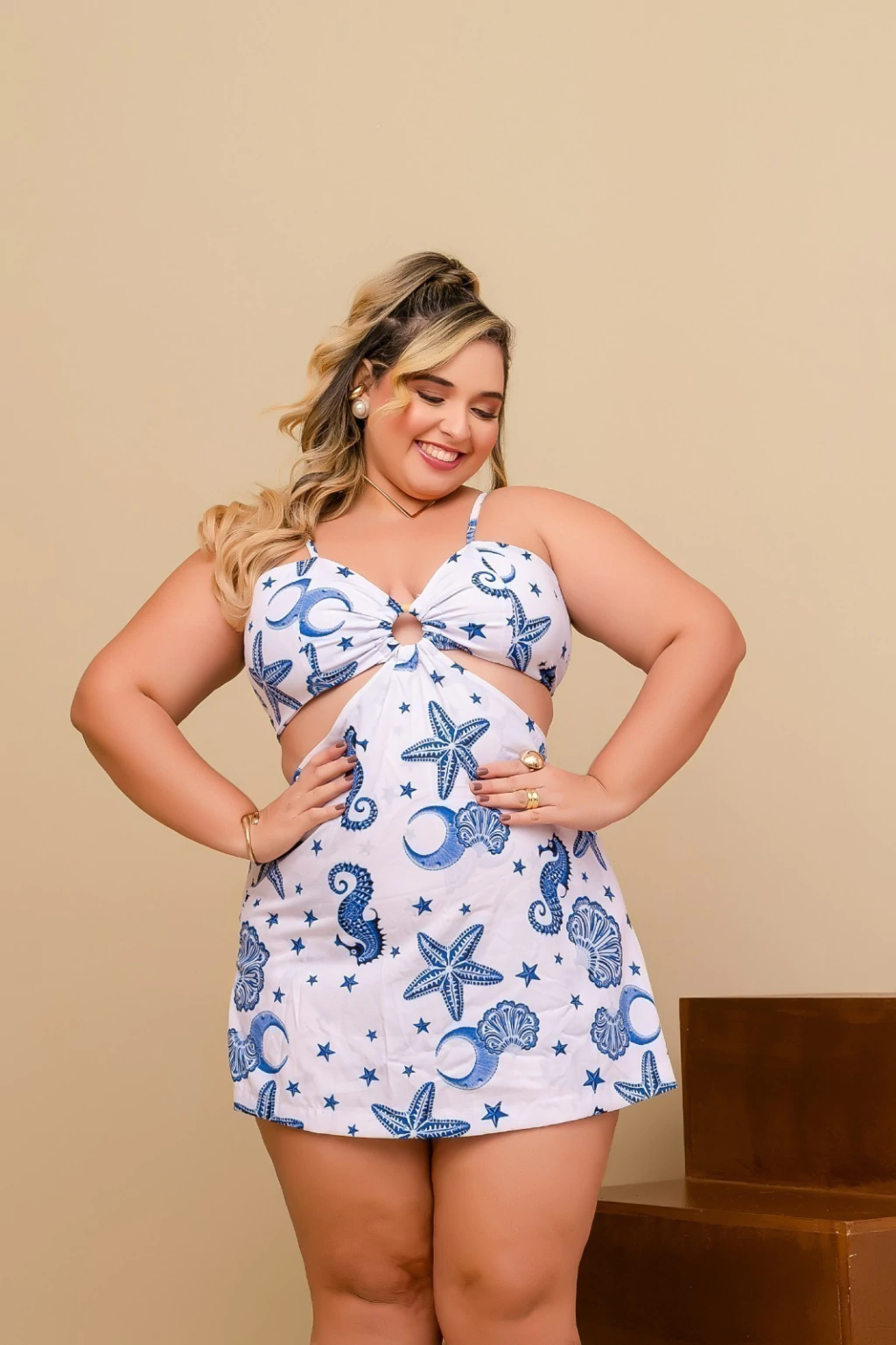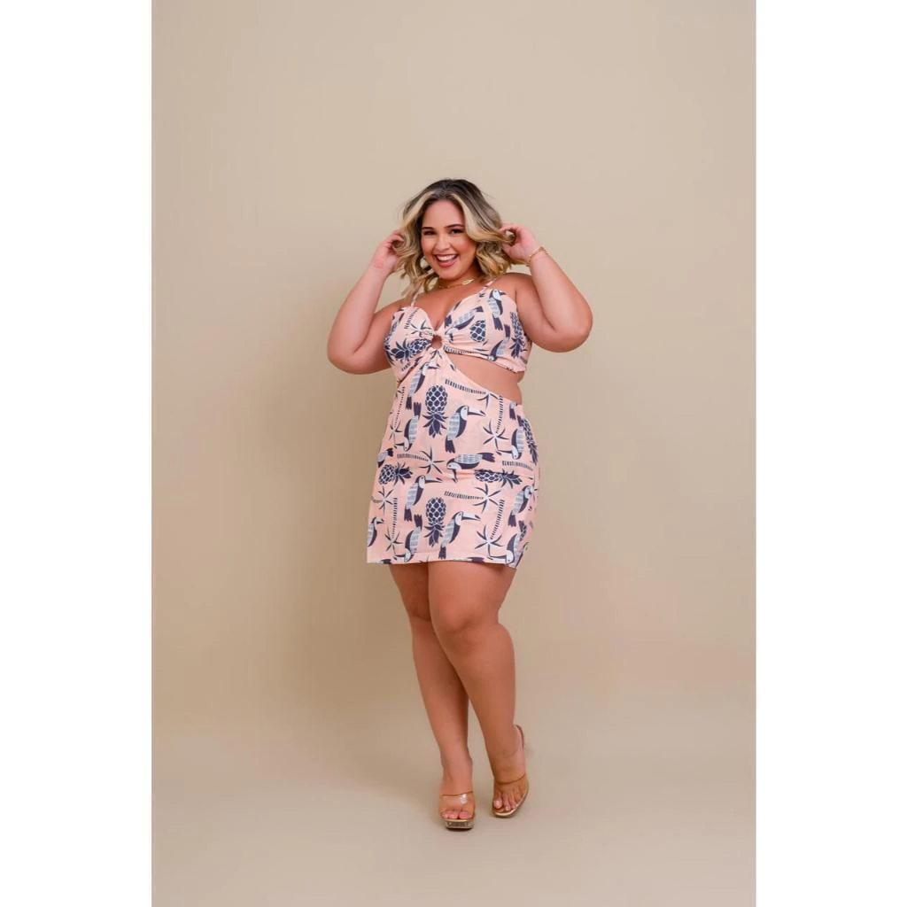 Este macaquinho plus size é a escolha perfeita para quem busca conforto, estilo e versatilidade. Com modelagem que valoriza o corpo, possui amarração nas costas e recorte frontal, conferindo um toque moderno e sensual. Ideal para dias quentes, viagens ou passeios descontraídos.