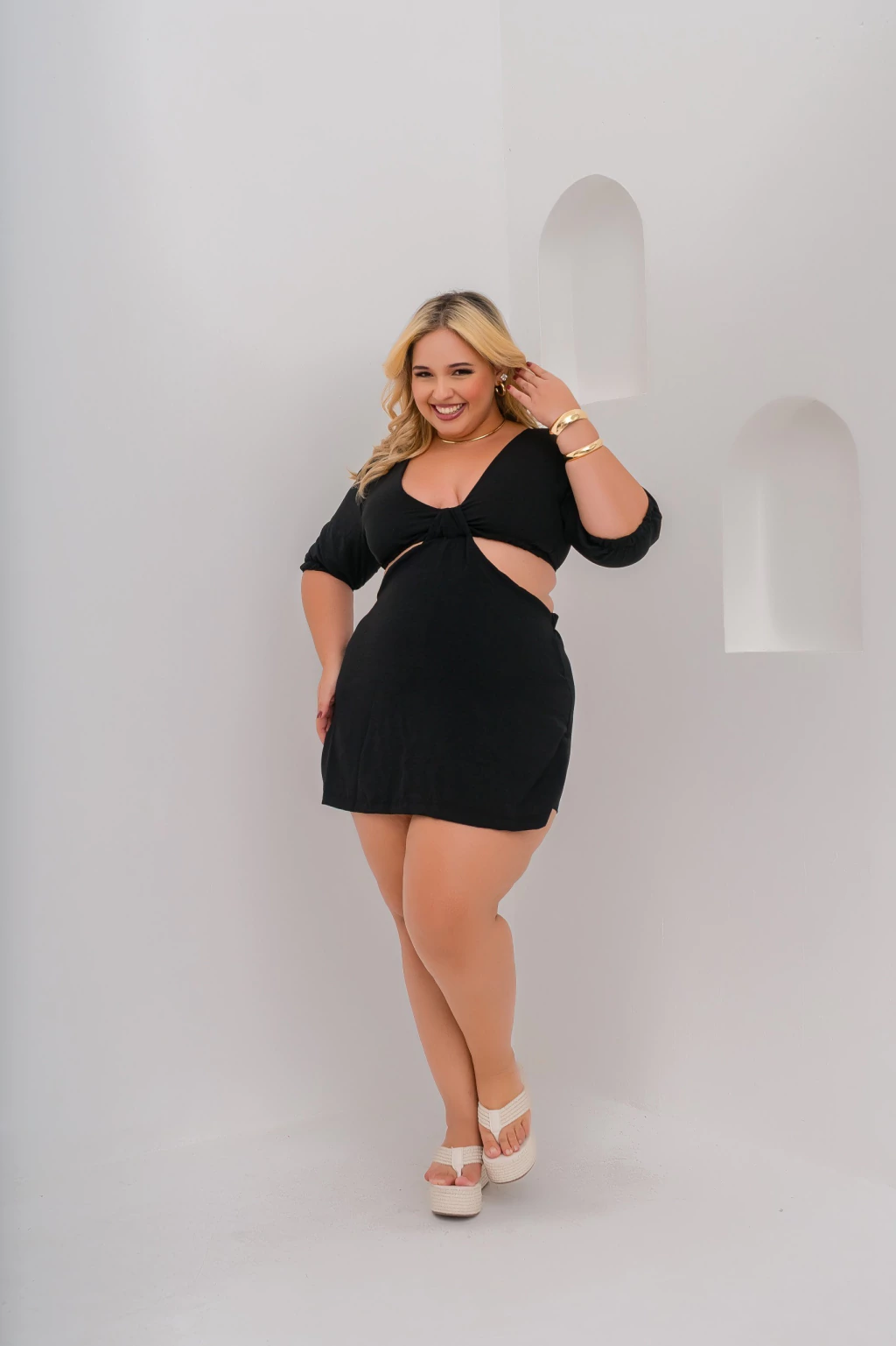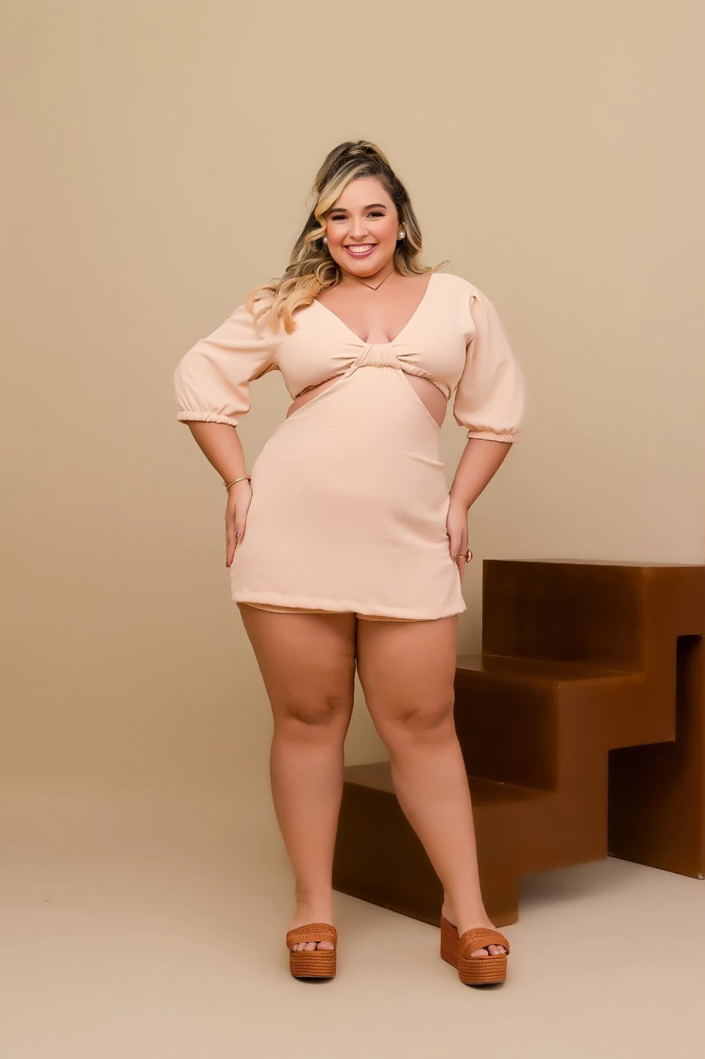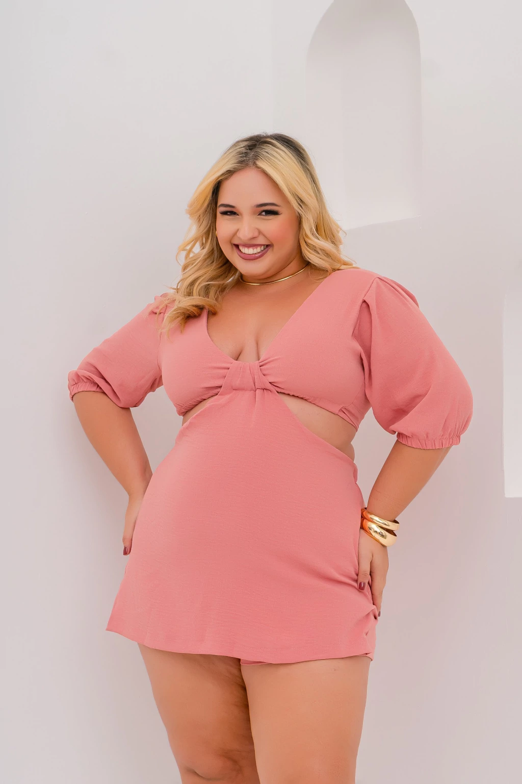 Macaquinho Feminino Plus Size Tecido Crepe Dunas