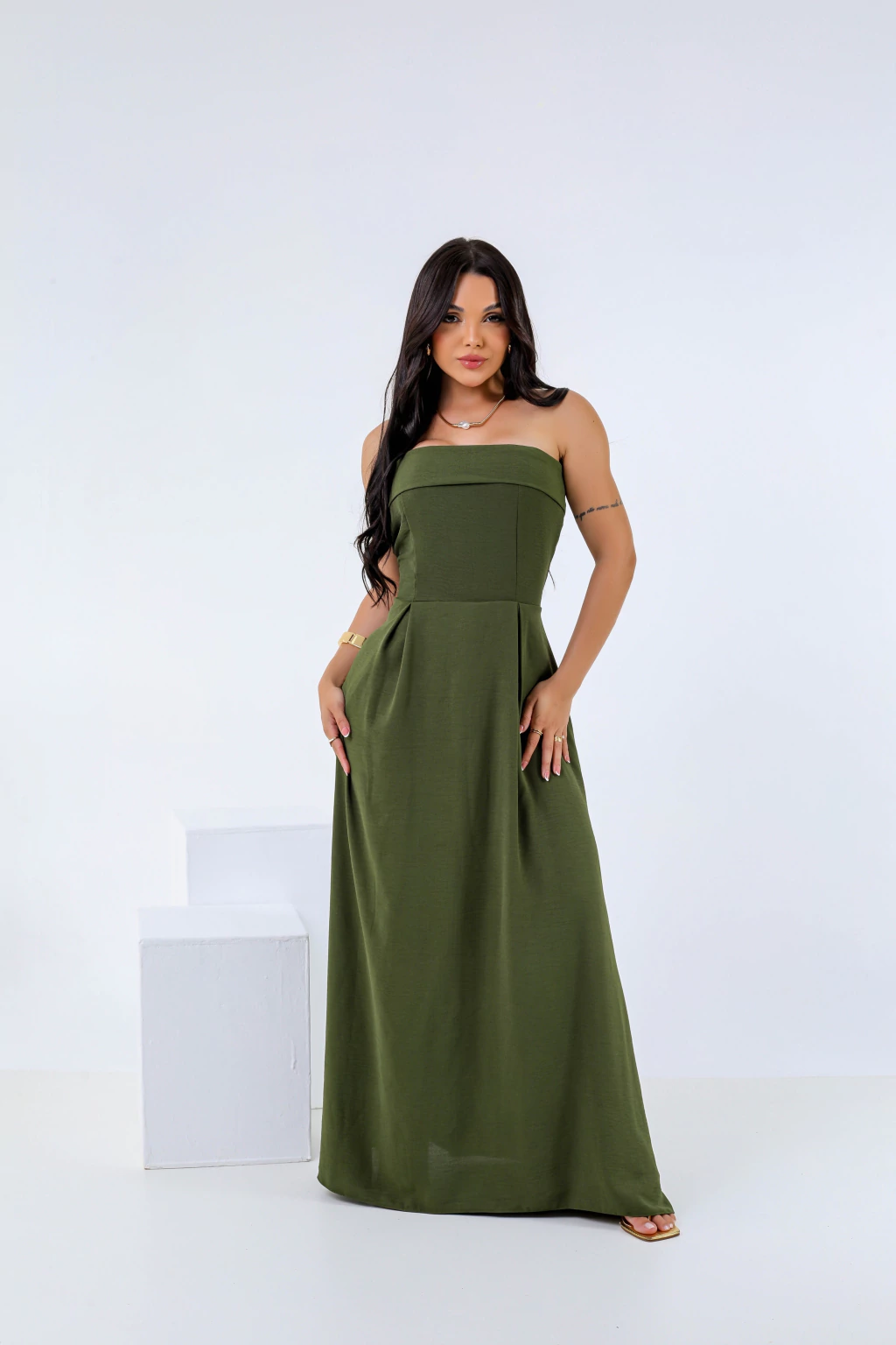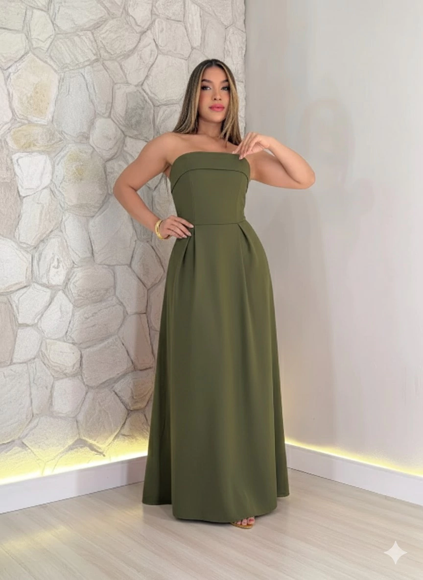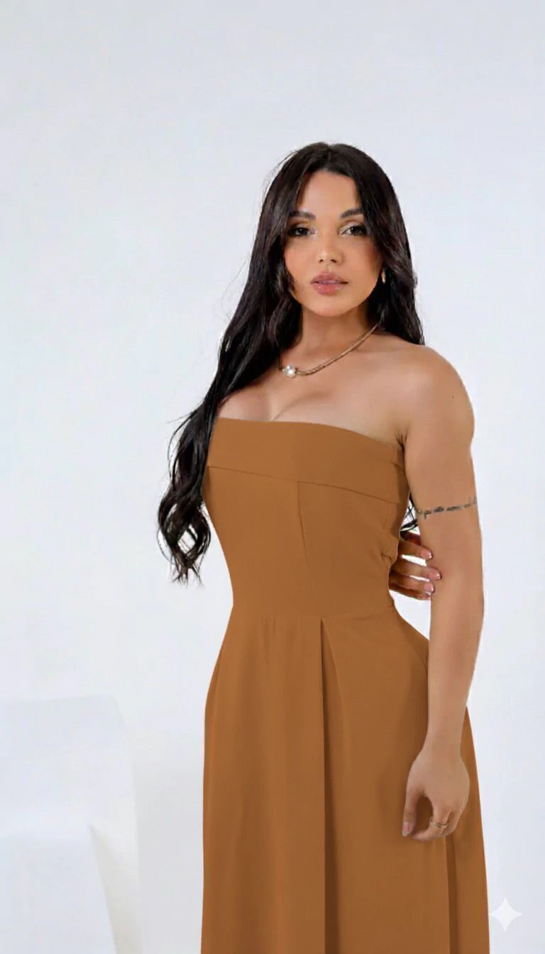 Elegância e leveza em um só modelo! O Vestido Crepe Duna é a escolha perfeita para quem busca um visual sofisticado e atemporal. Feito em tecido crepe de alta qualidade, possui caimento fluido que valoriza a silhueta com conforto e charme. Seu modelo tomara que caia destaca os ombros e o colo de forma delicada, enquanto o recorte estruturado no busto e as pregas sutis na saia criam um movimento elegante e natural.