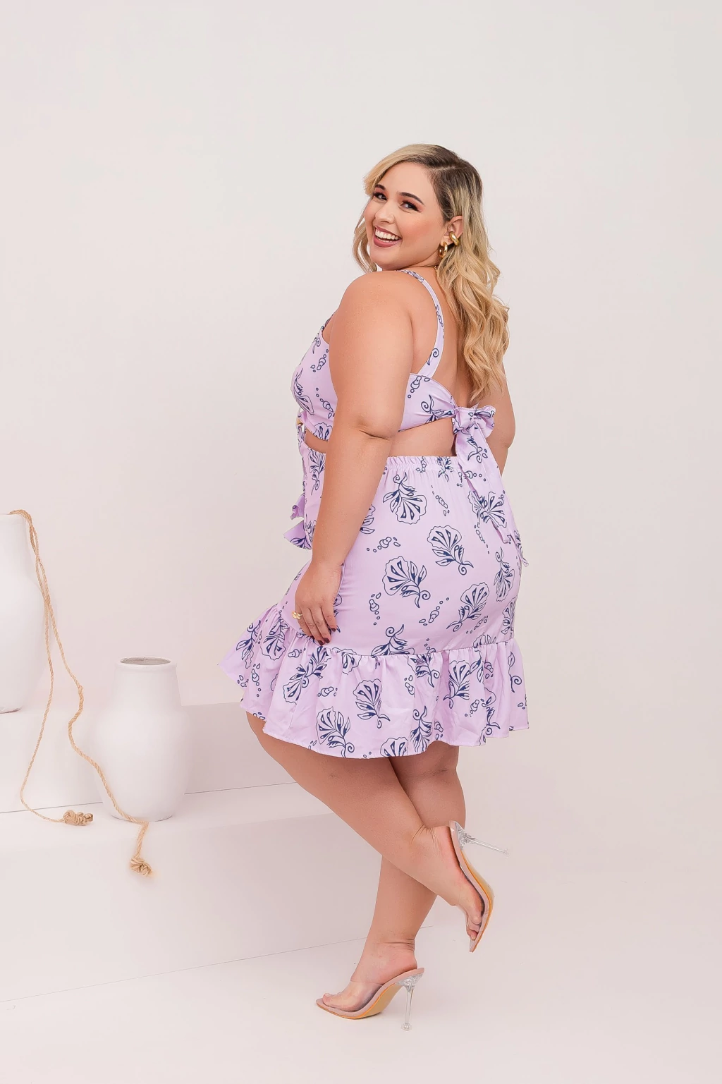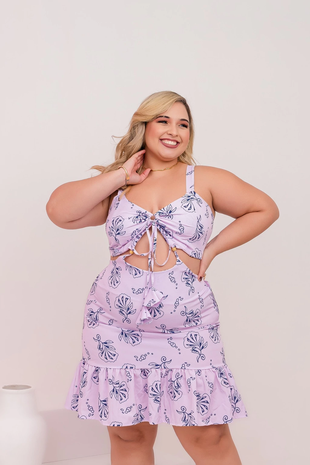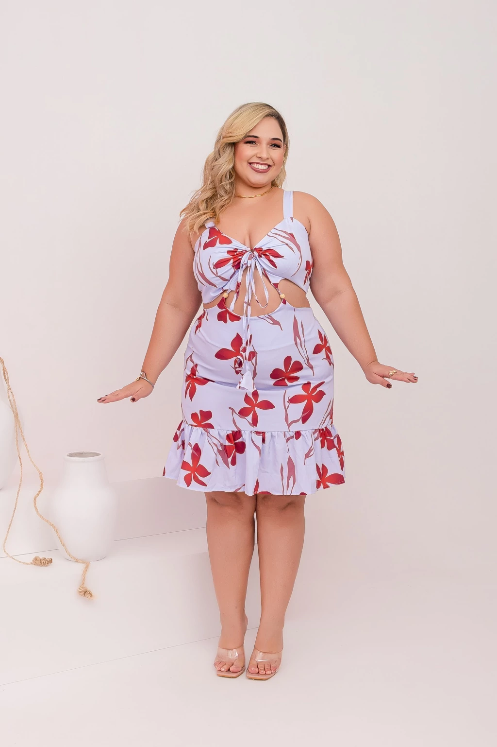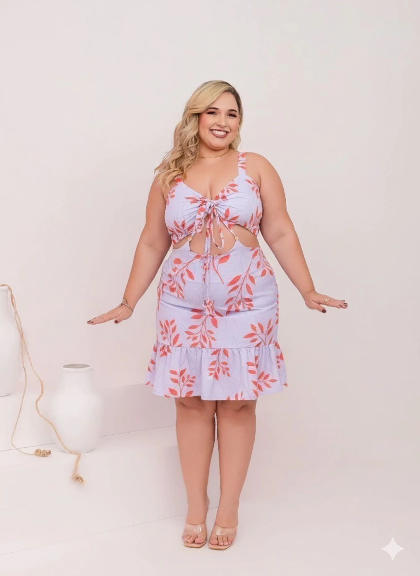 Cheio de charme e frescor, este vestido plus size é ideal para quem busca um visual leve, confortável e moderno. Confeccionado em tecido tactel, ele oferece caimento suave, toque macio e excelente respirabilidade, tornando-o perfeito para dias quentes e ocasiões casuais.
