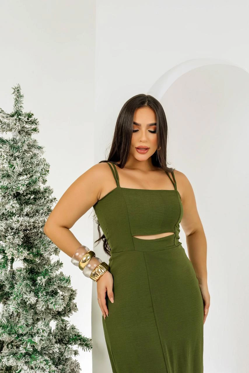 Confeccionado em tecido Crepe Duna de alta qualidade, este modelo apresenta um caimento impecável que valoriza as curvas com elegância. Seu design moderno conta com recorte frontal sutil que destaca a cintura e fenda lateral, garantindo um toque de ousadia sem perder a delicadeza.