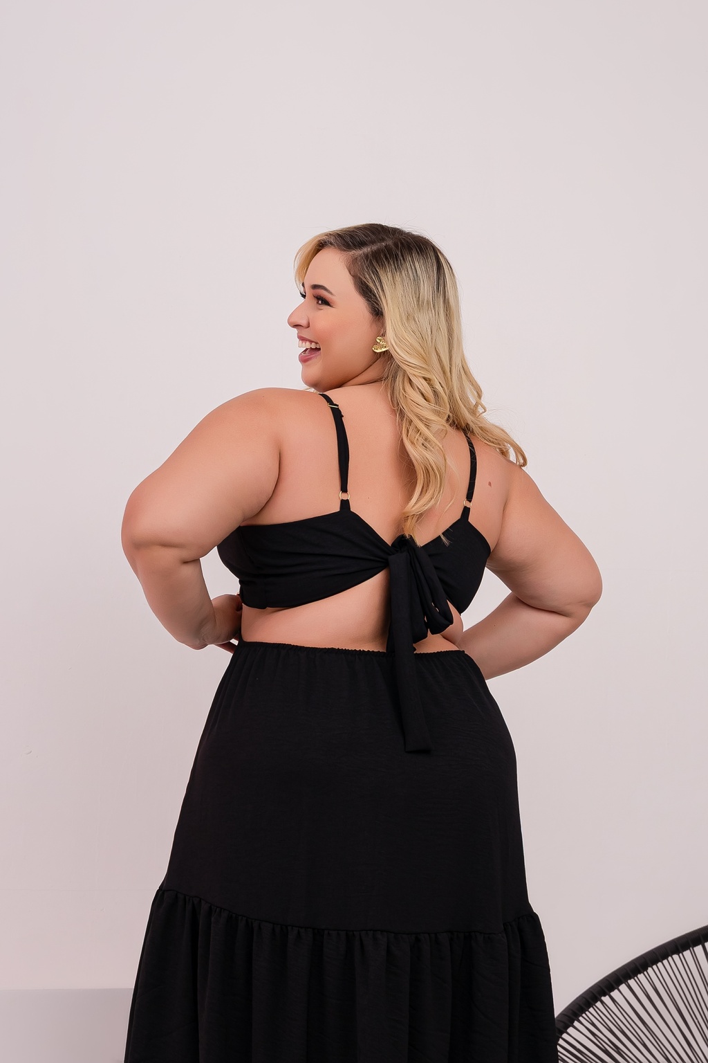 Esse vestido longo é a união perfeita entre leveza e estilo. Confeccionado em Crepe Duna, oferece um caimento confortável e fluido. O modelo conta com recorte frontal que valoriza a silhueta, alças finas reguláveis e amarração nas costas, garantindo ajuste ideal ao corpo. A saia ampla com leve babado adiciona movimento e charme ao visual, ideal para dias quentes ou ocasiões especiais.