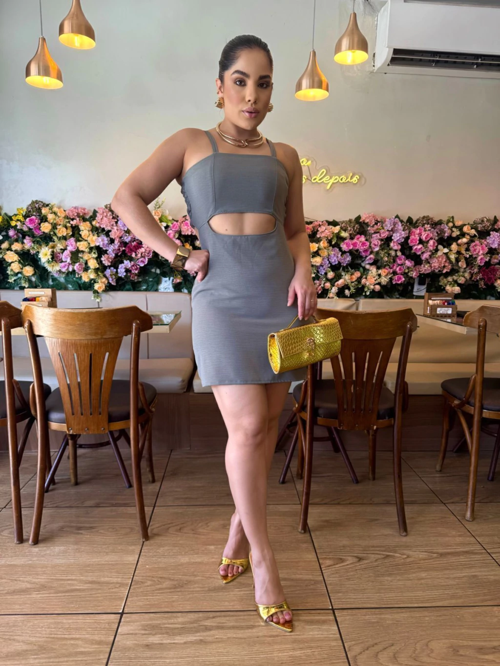 O vestido curto em Crepe Duna é a escolha perfeita para quem busca um visual moderno, elegante e feminino. Com modelagem justa ao corpo e forro interno que garante conforto e segurança, o destaque fica por conta do recorte frontal na região da cintura, que adiciona um toque ousado e sofisticado à peça. As alças finas proporcionam um caimento delicado, valorizando os ombros e o colo, enquanto o comprimento mini realça as curvas com estilo e atitude.