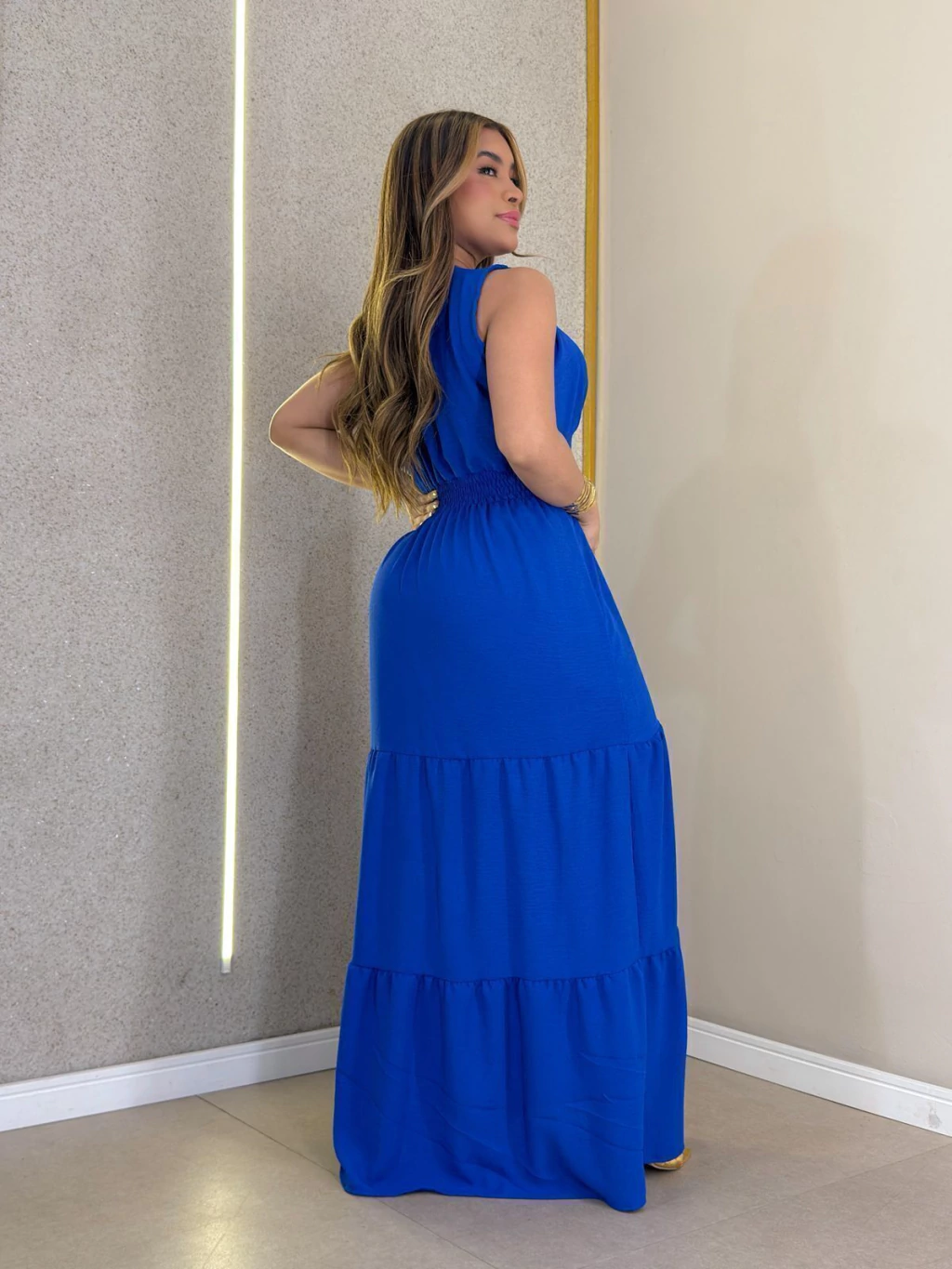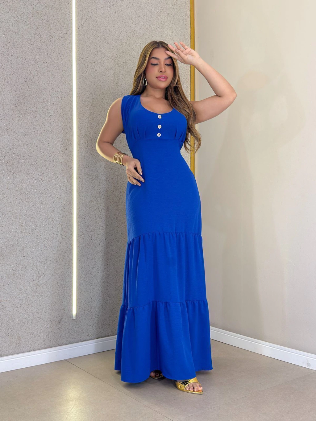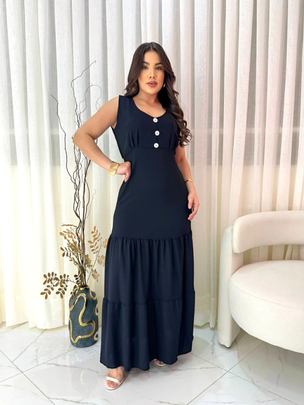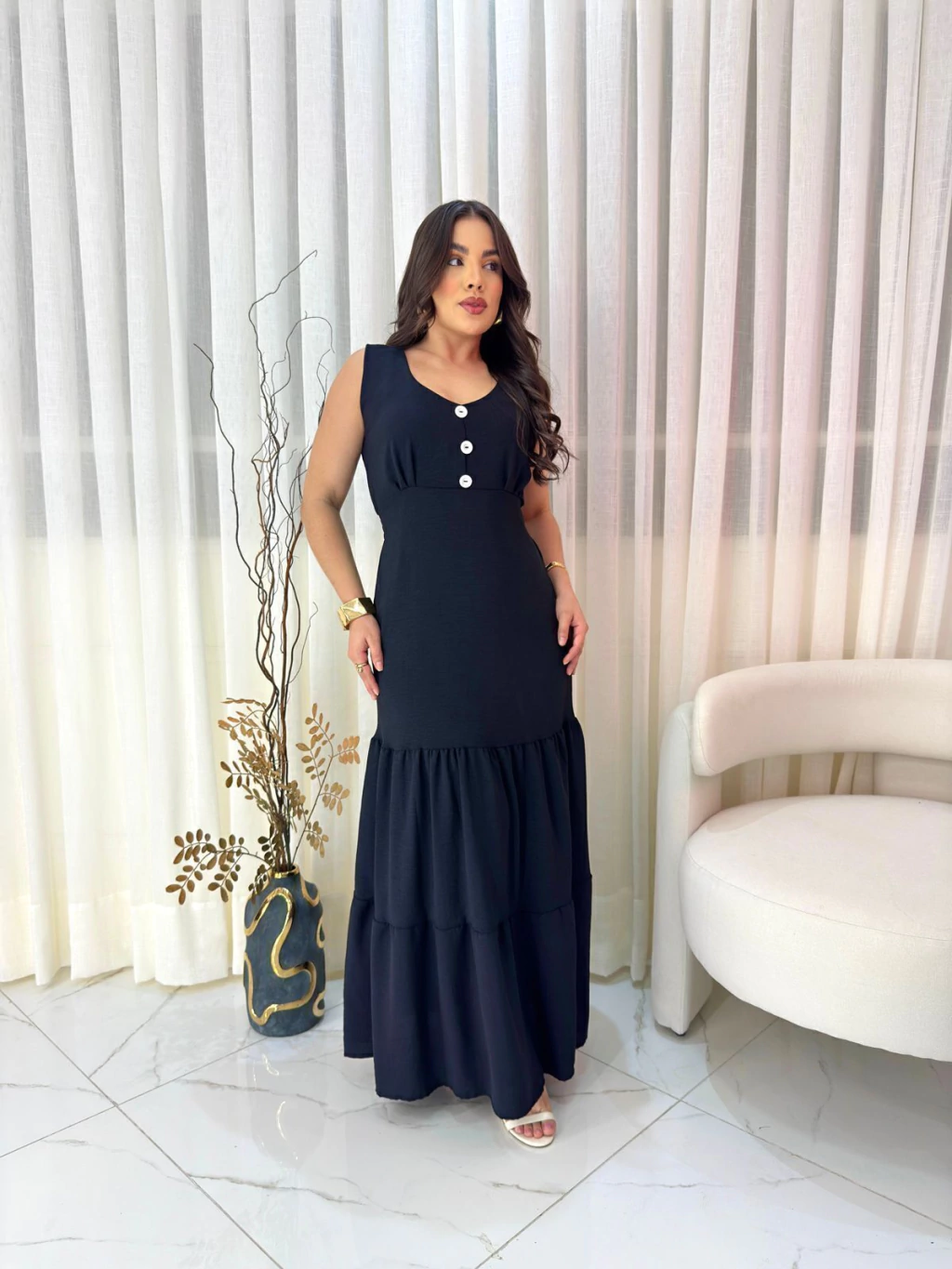 Com um caimento impecável e um toque romântico, o vestido longo em Crepe Duna é a escolha perfeita para quem busca elegância e leveza no dia a dia. O modelo possui busto com recorte e botões decorativos, que realçam a região do colo com sutileza. A saia conta com camadas em babado, proporcionando movimento e um ar delicado à peça.