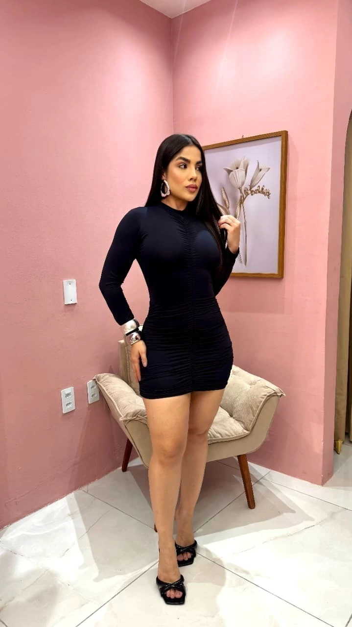 Desperte olhares com este vestido deslumbrante confeccionado em poliamida premium, tecido que se ajusta perfeitamente ao corpo, valorizando as curvas com elegância e conforto. O modelo possui manga longa, recorte aberto nas costas e franzido estratégico que realça a silhueta com muito charme. Ideal para ocasiões noturnas, baladas ou eventos especiais.
